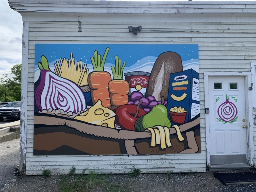 Open Table commissioned Art for All to paint a mural on the side of their distribution center at 40 Beharrell Street in West Concord. Andy Smith designed and painted the mural with the assistance of students from Concord-Carlisle High School.